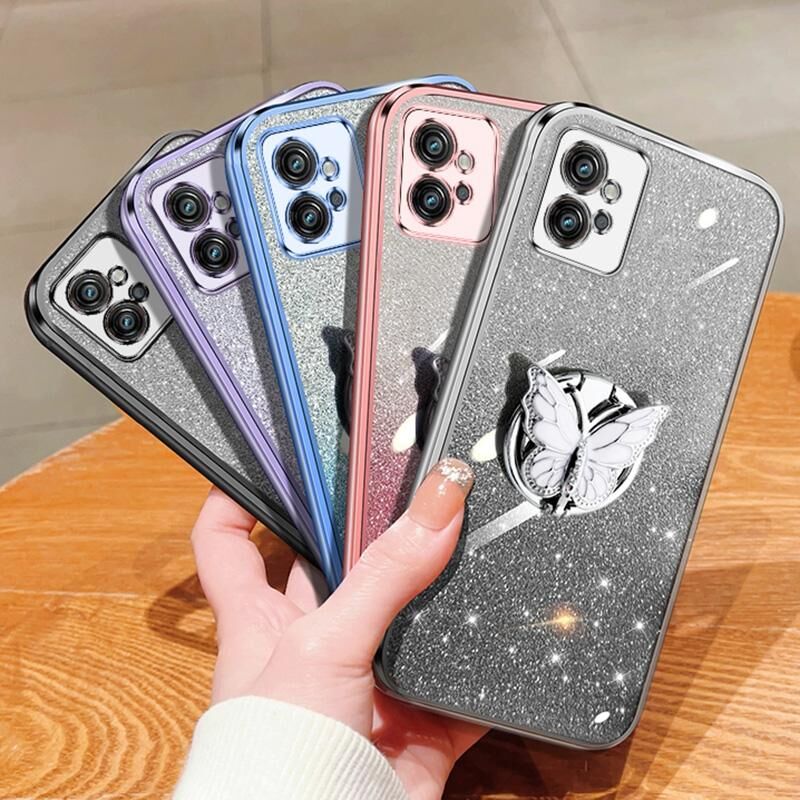 Για Motorola Moto G32 Επιμεταλλωμένο διαβάθμιση Glitter πεταλούδα κάτοχος TPU τηλέφωνο υπόθεση (ασημί)