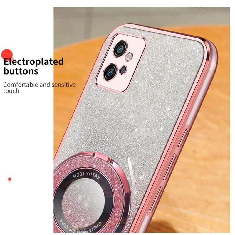 Για Motorola Moto G32 Επιμεταλλωμένο βαθμιδωτή Glitter στρογγυλή θήκη TPU τηλέφωνο κάτοχος (μαύρο)