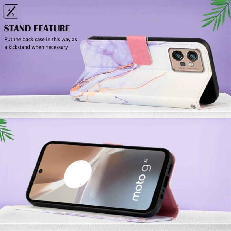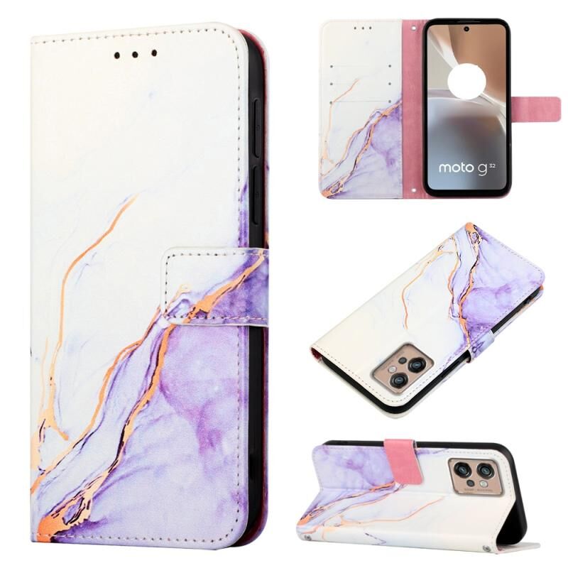 Θήκη τηλεφώνου από δέρμα με σχέδιο μαρμάρου για Motorola Moto G32 PT003 (Λευκό Μωβ)