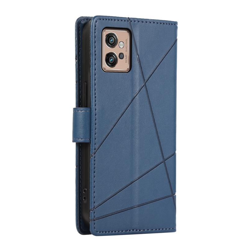 For Motorola Moto G32 PU Genuine Leather Texture Embossed Line Phone Case(Blue)