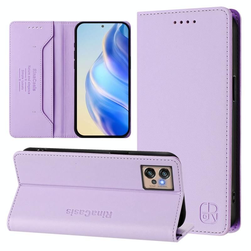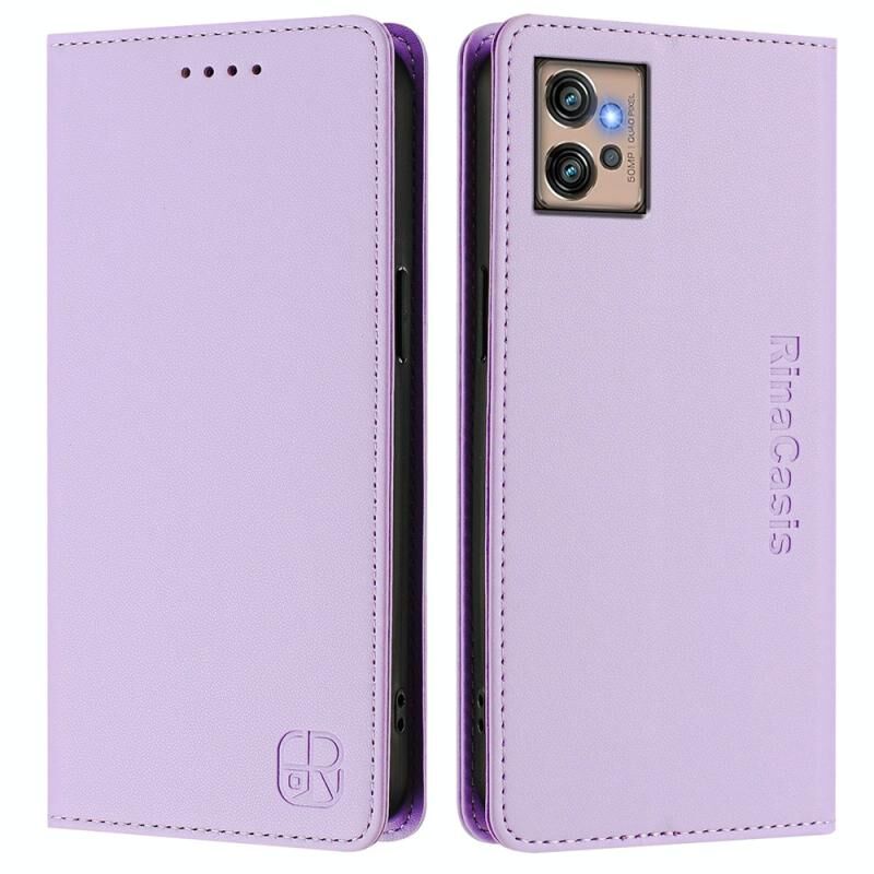 Θήκη τηλεφώνου δερμάτινη με μαγνητική απορρόφηση και διπλή πτυχή για Motorola Moto G32 RC01 (ανοιχτό μωβ)