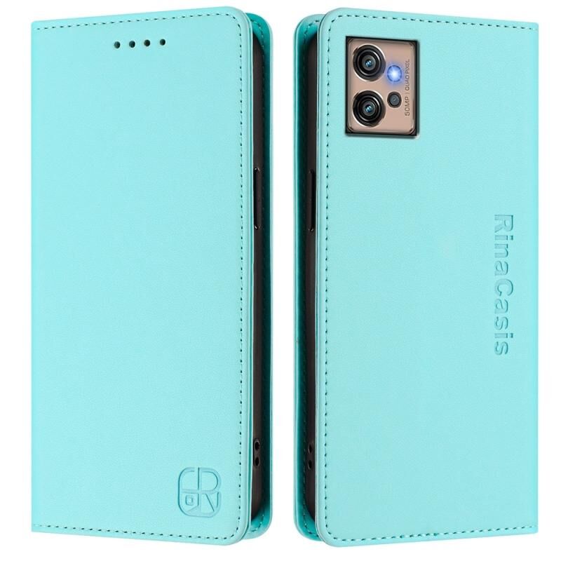 Θήκη τηλεφώνου δερμάτινη με μαγνητική απορρόφηση και διπλή πτυχή για Motorola Moto G32 RC01 (Μέντας πράσινο)