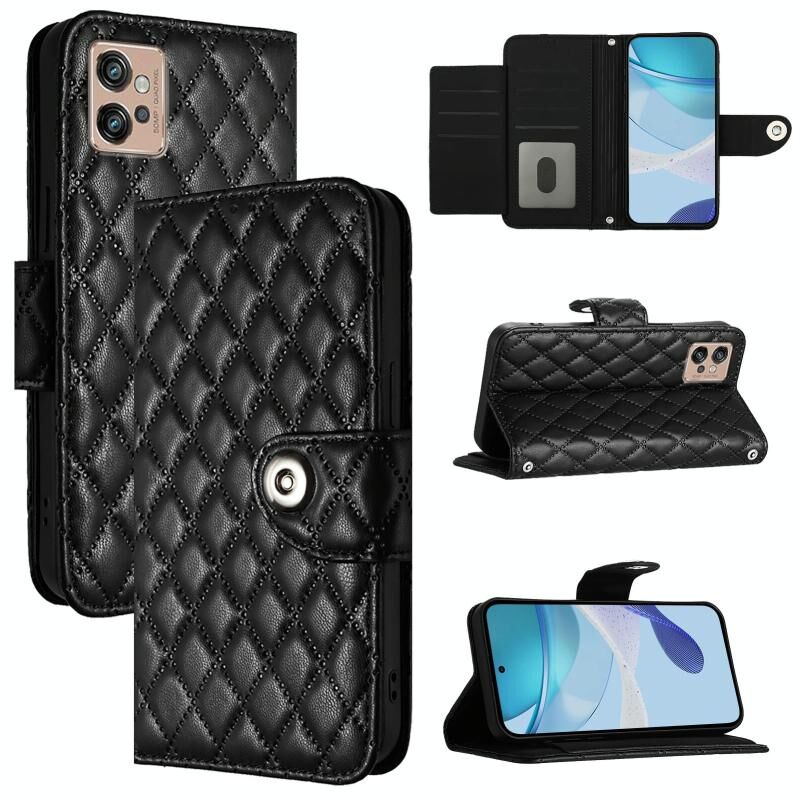 Για Motorola Moto G32 Rhombic Texture Flip δερμάτινη θήκη τηλεφώνου με κορδόνι (μαύρο)