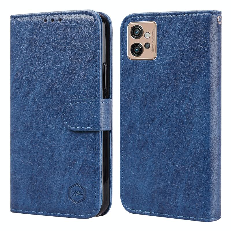 Θήκη κινητού τηλεφώνου για Motorola Moto G32 με υφή δέρματος λάδι και PU + TPU (Σκούρο μπλε)