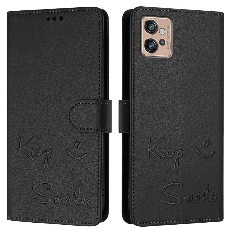 Θήκη τηλεφώνου δερμάτινη με ανάγλυφο χαμόγελο για Motorola Moto G32 (Μέντας Πράσινο)