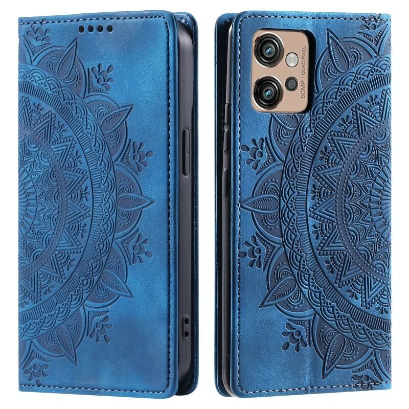 Για Motorola Moto G32 Totem ανάγλυφη μαγνητική δερμάτινη θήκη τηλεφώνου (μπλε)