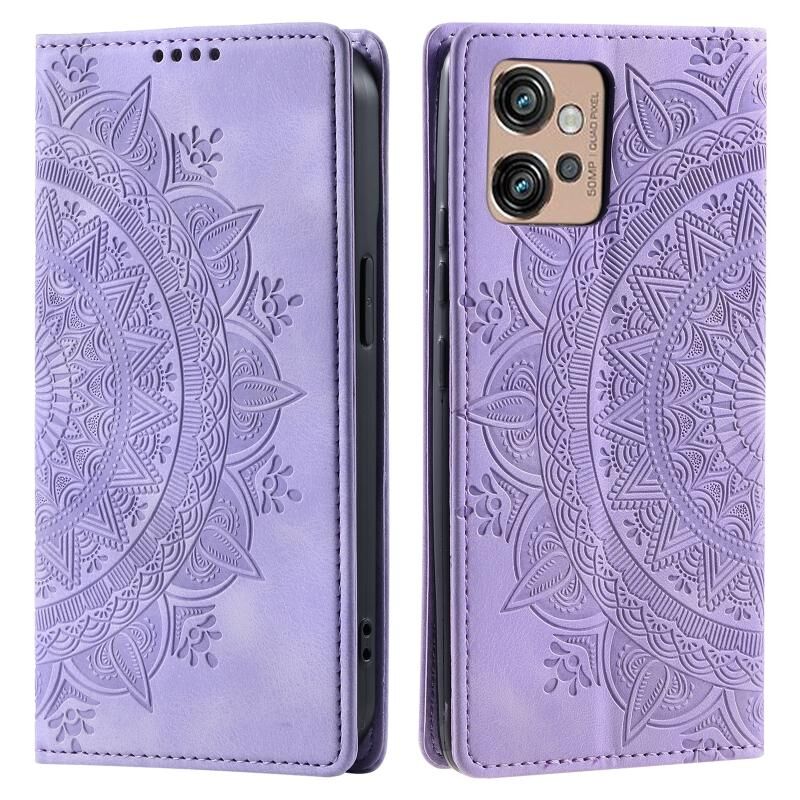 Για Motorola Moto G32 Totem ανάγλυφη μαγνητική δερμάτινη θήκη τηλεφώνου (μωβ)