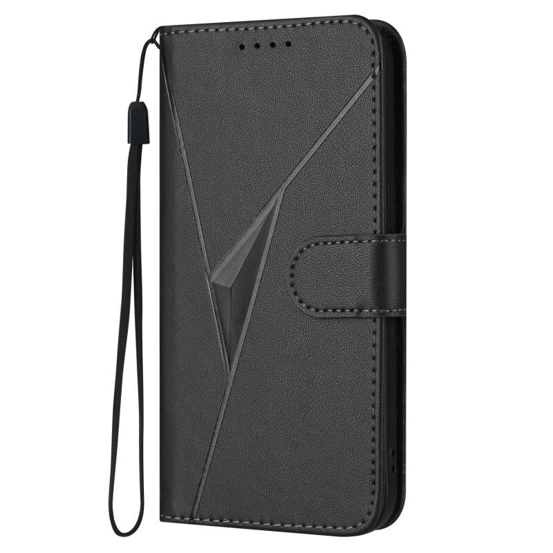 Για Motorola Moto G32 Τρίγωνο μοτίβο αγκράφα κούμπωμα δερμάτινη θήκη τηλεφώνου (μαύρο)