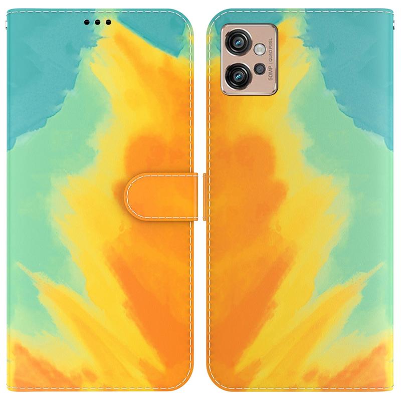 Θήκη τηλεφώνου από δέρμα με σχέδιο Watercolor για Motorola Moto G32 (Φθινοπωρινό Φύλλο)