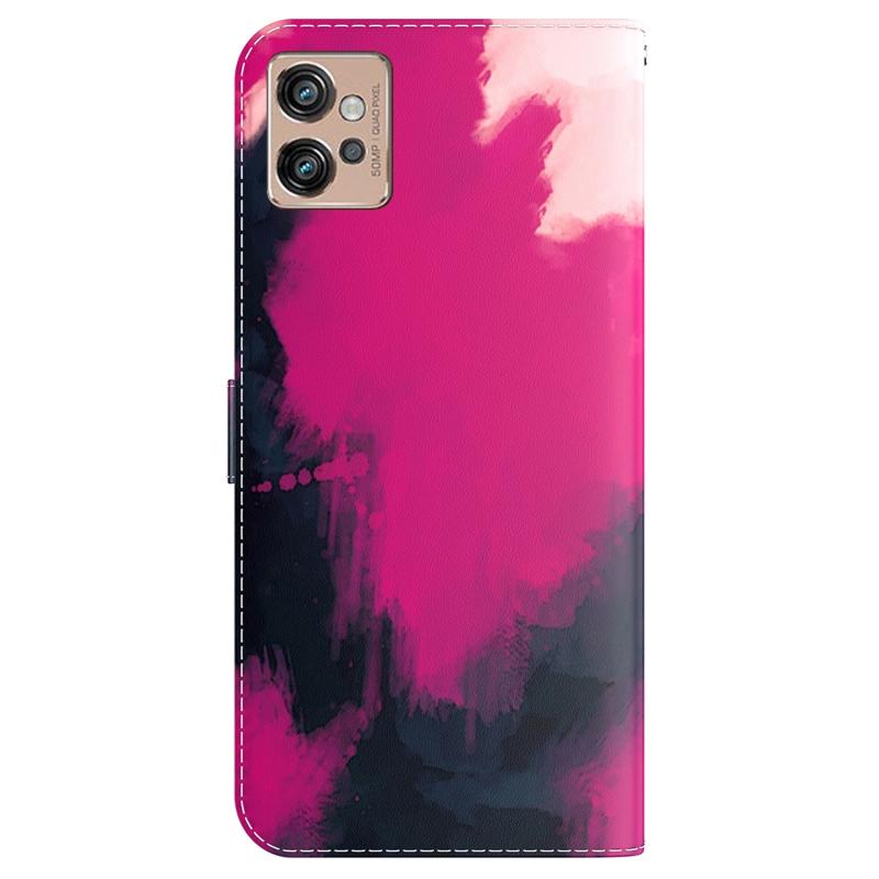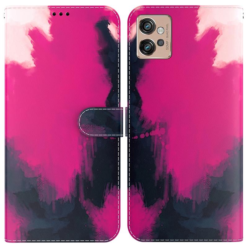 Θήκη τηλεφώνου από δέρμα με σχέδιο ακουαρέλας για Motorola Moto G32 (Χρώμα Μούρο)
