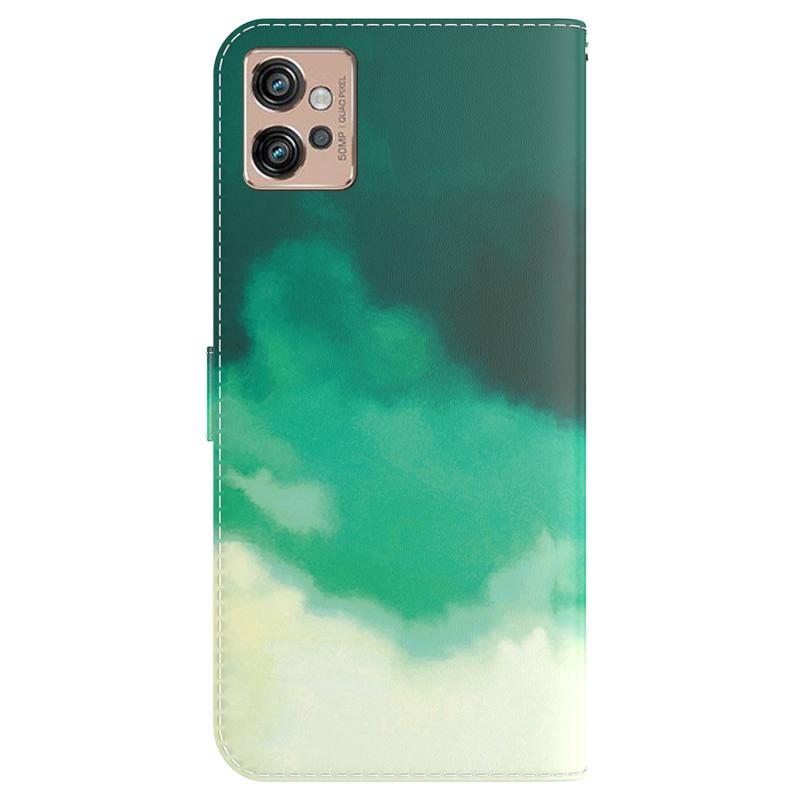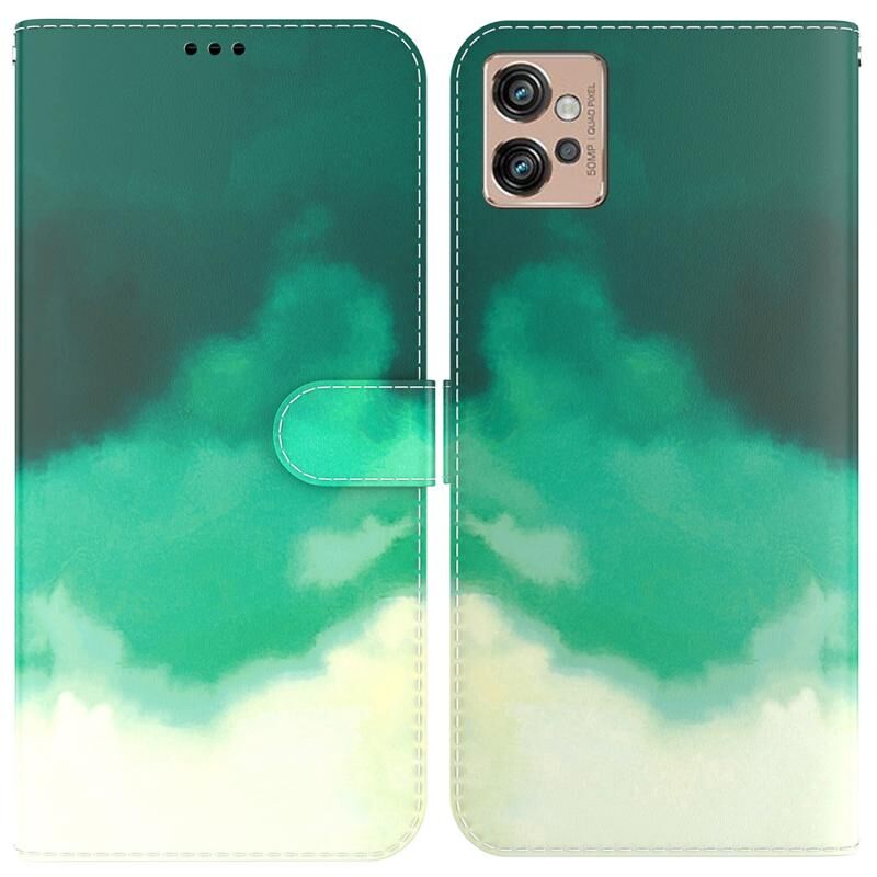 Θήκη τηλεφώνου από δέρμα με σχέδιο ακουαρέλας για Motorola Moto G32 (Κυανό πράσινο)