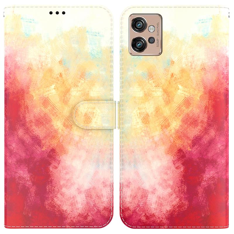 Θήκη τηλεφώνου από δέρμα με σχέδιο Watercolor για Motorola Moto G32 (Spring Cherry)