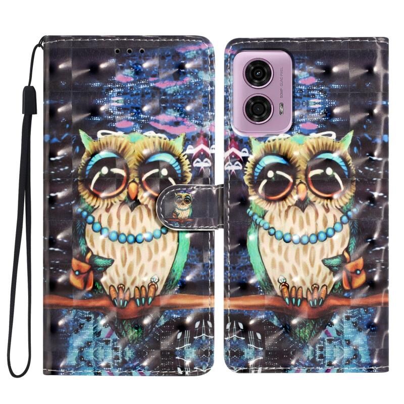 Θήκη κινητού τηλεφώνου από δέρμα με τρισδιάστατο σχέδιο για Motorola Moto G34 (Γεράκι με μεγάλα μάτια)