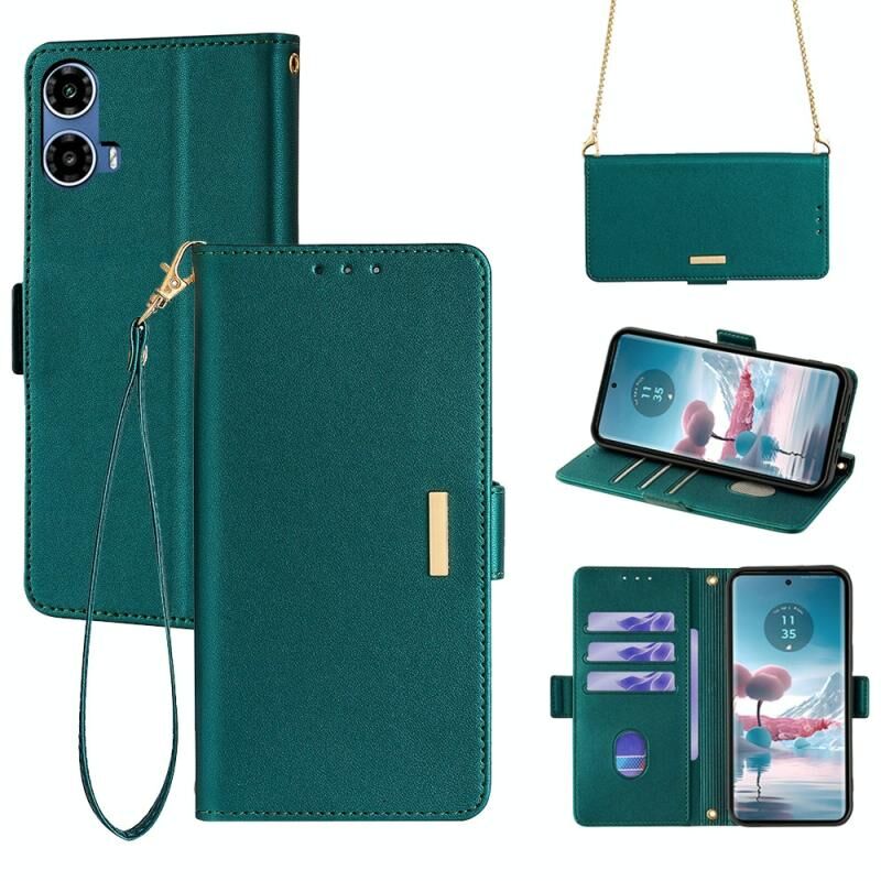 Θήκη κινητού Motorola Moto G34 5G από δέρμα με αλυσίδα για πέρασμα στον ώμο (Μαύρο)