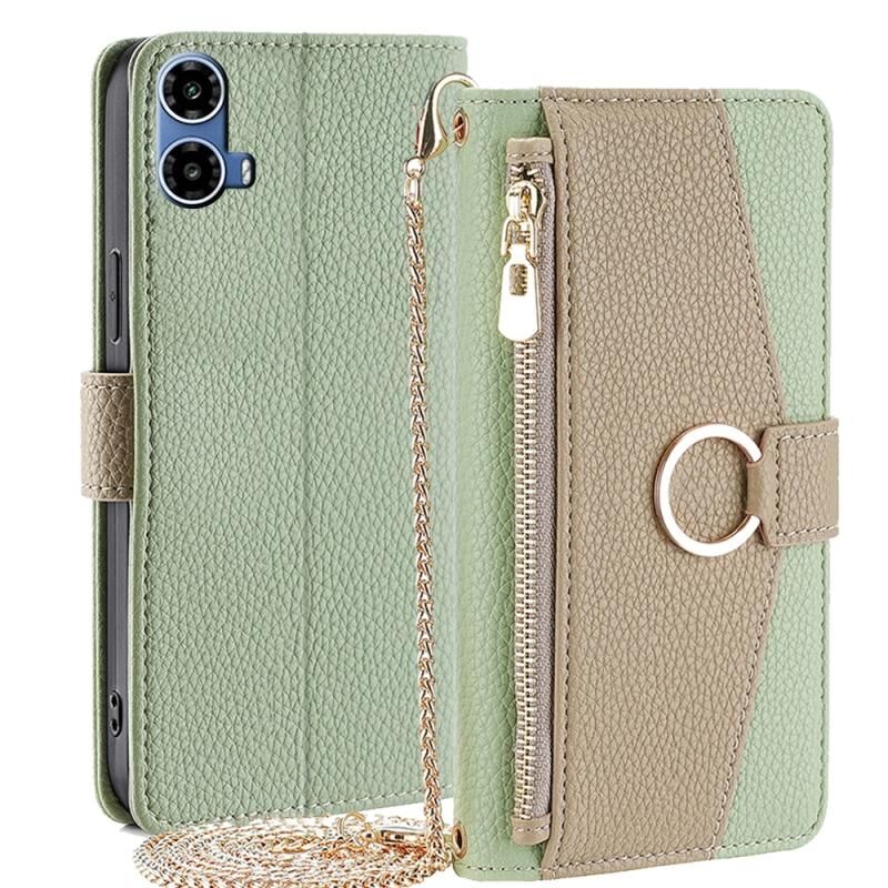 Θήκη κινητού τηλεφώνου Motorola Moto G34 5G σε στυλ crossbody από δέρμα με υφή λύτσι (Μπλε)