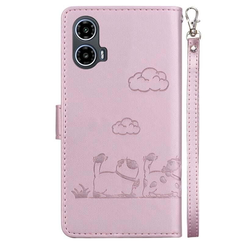 Θήκη τηλεφώνου από δέρμα με χαριτωμένες γάτες και τεχνολογία RFID για Motorola Moto G34 5G (Χρυσό Ροζ)