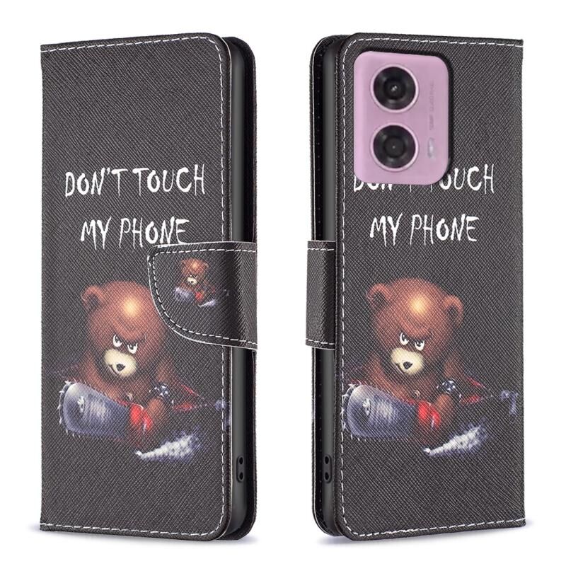 Θήκη τηλεφώνου από δέρμα με έγχρωμο σχέδιο (αρκούδα) για Motorola Moto G34 5G / G45 5G.