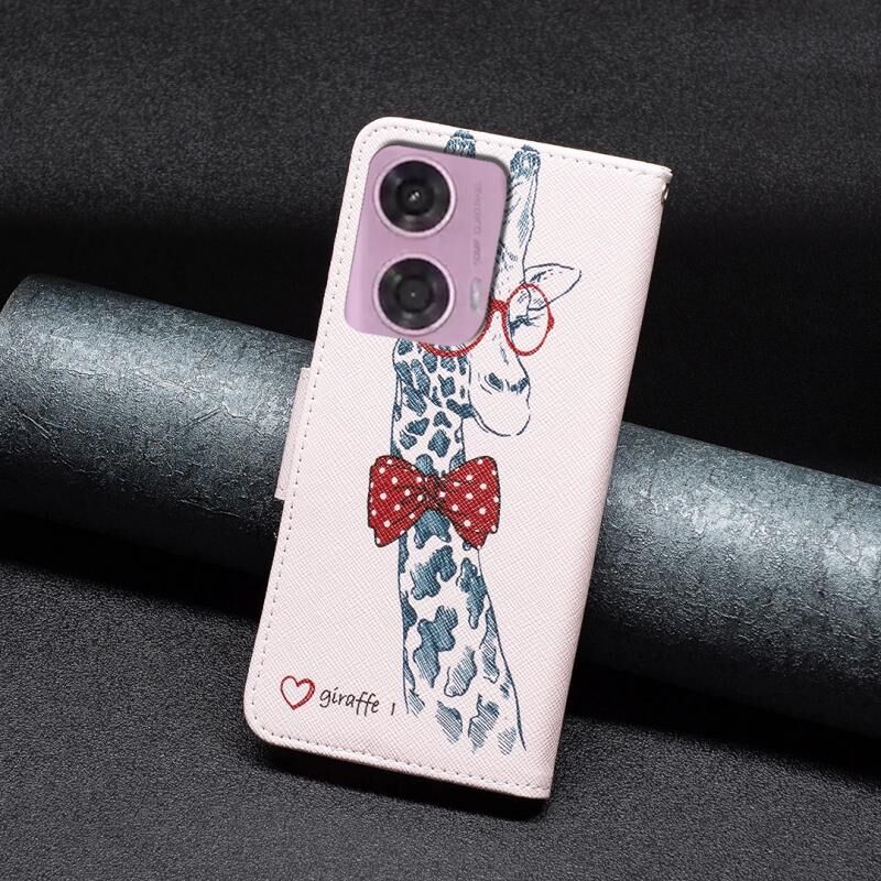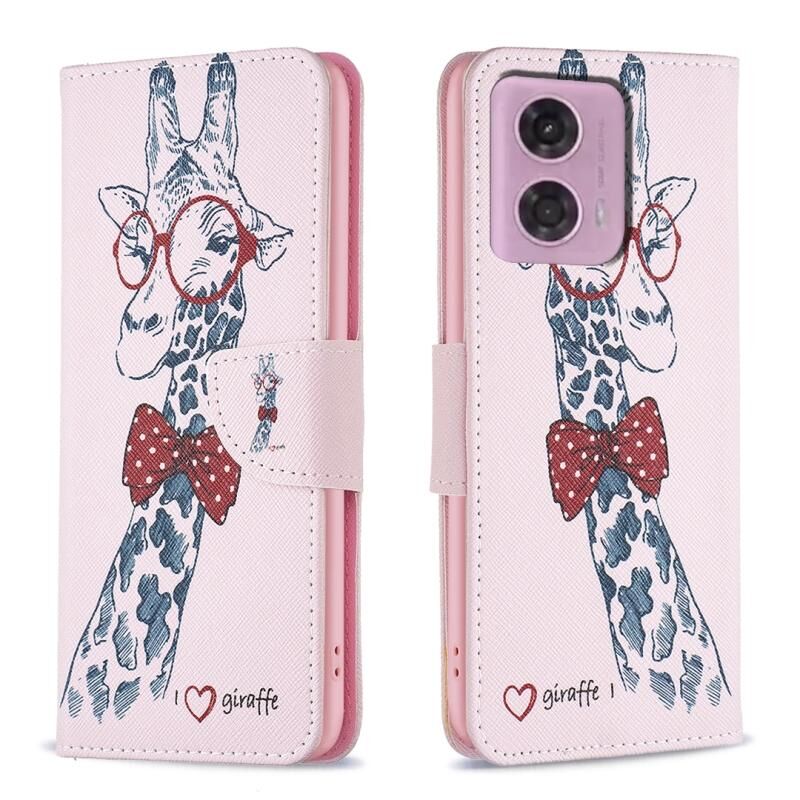 Θήκη τηλεφώνου δερμάτινη με έγχρωμο σχέδιο (Καμηλοπάρδαλη) για Motorola Moto G34 5G / G45 5G.