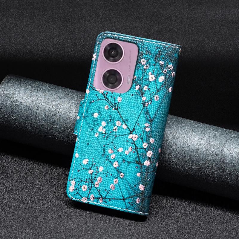 For Motorola Moto G34 5G / G45 5G Colored Drawing Pattern Leather Phone Case(Plum Blossom)