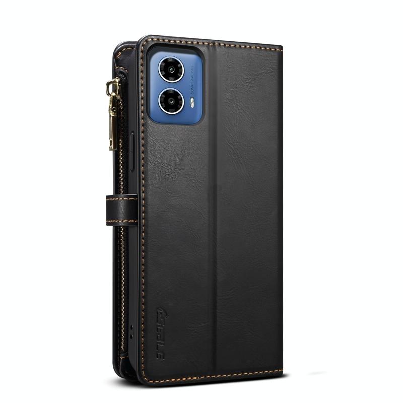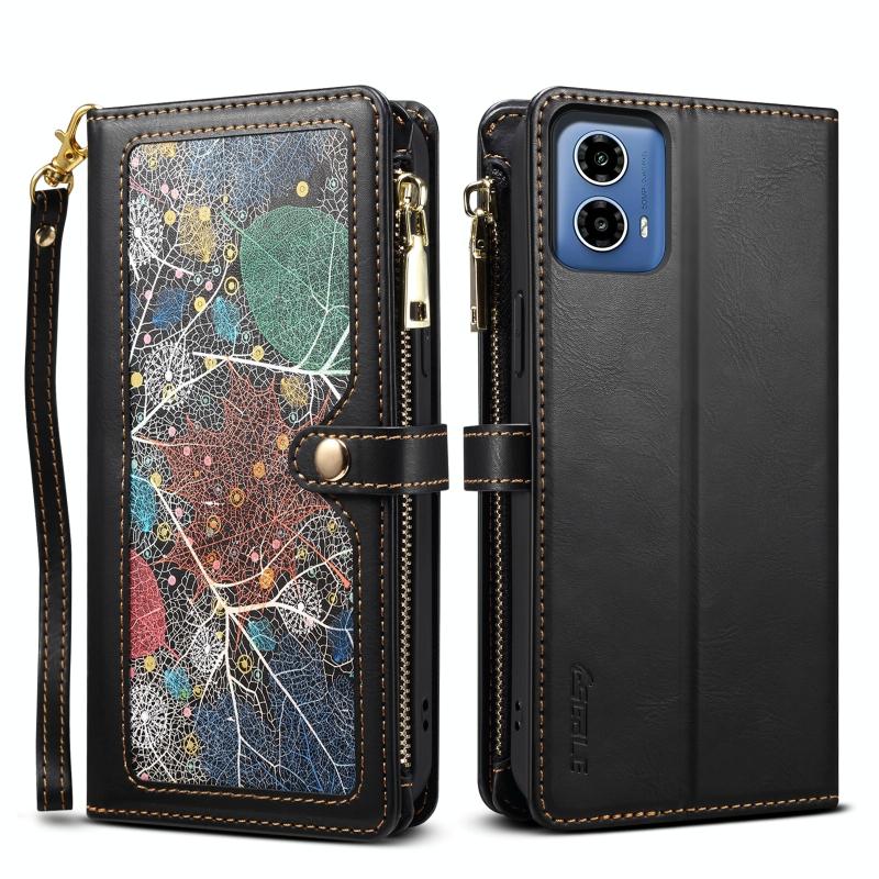 For Motorola Moto G34 5G / G45 5G ESEBLE Star Series Lanyard Zipper Wallet RFID Leather Case(Black) (ESEBLE)