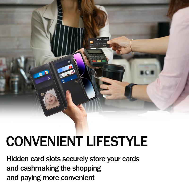 4. Zipper Wallet: Super multi-card slot can hold multiple cards; The opening and closing of the zipper cash compartment can protect your cash. Comfortable and practical to go out a mobile phone bag enough!