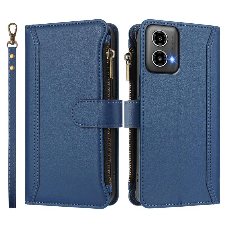For Motorola Moto G34 5G / G45 5G Magnetic Closure 9 Card Slots Zipper Leather Case with Hand Strap(Dark Blue)