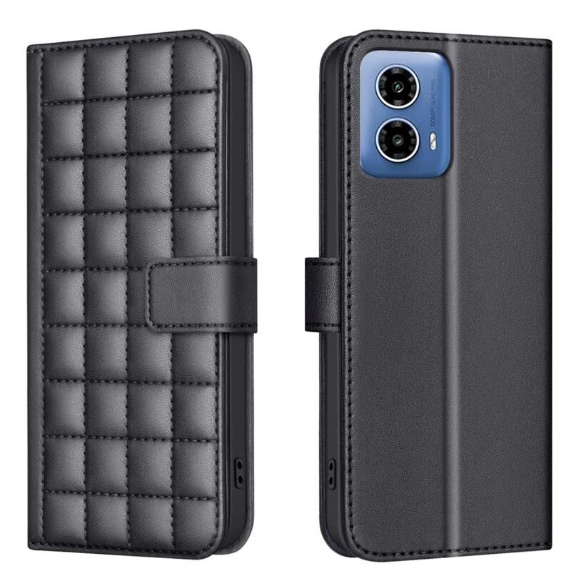 Θήκη τηλεφώνου από δέρμα με τετράγωνη υφή για Motorola Moto G34 5G / G45 5G (Μαύρο)