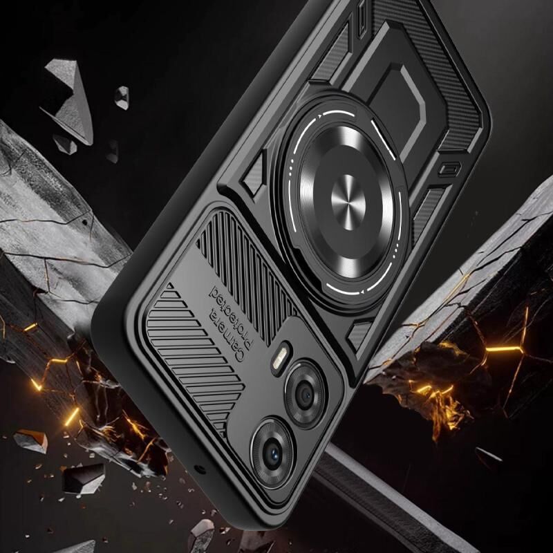 Θήκη τηλεφώνου για Motorola Moto G34 Armor με περιστρεφόμενη βάση και MagSafe (Μαύρο)