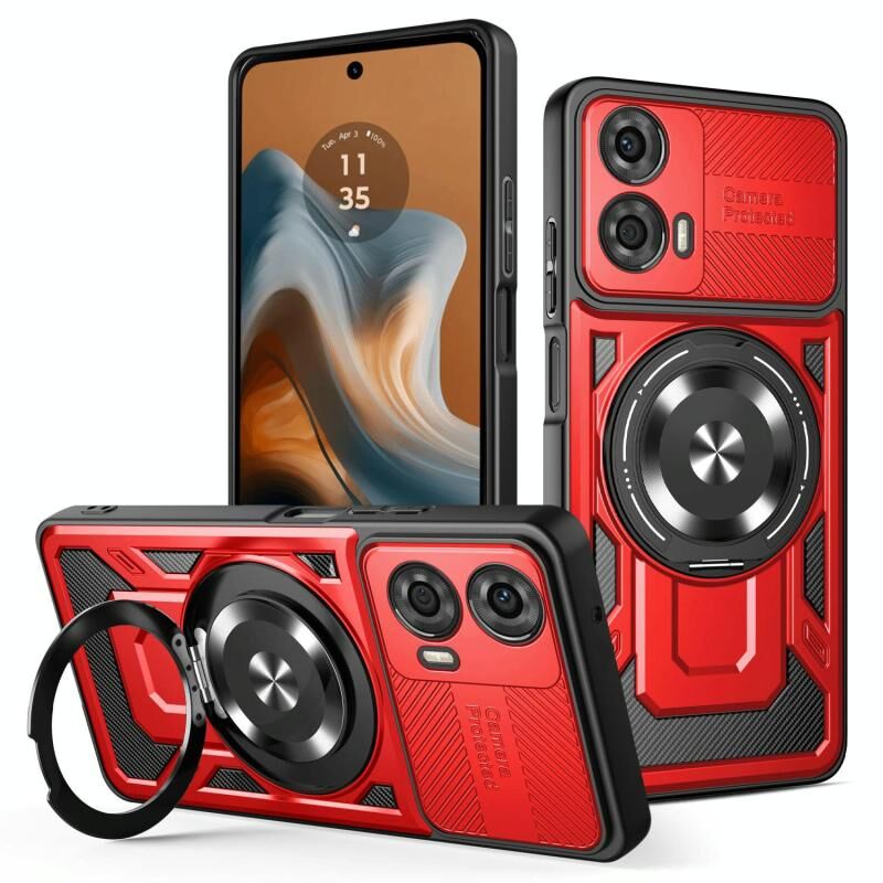 Θήκη τηλεφώνου για Motorola Moto G34 Armor με περιστρεφόμενη βάση και MagSafe (Μαύρο)