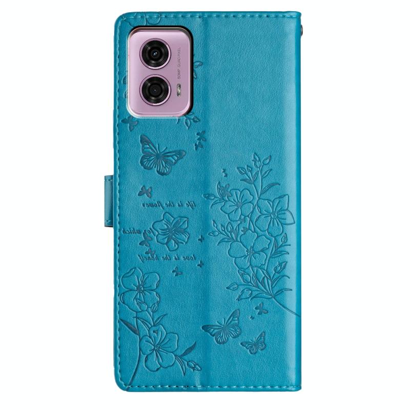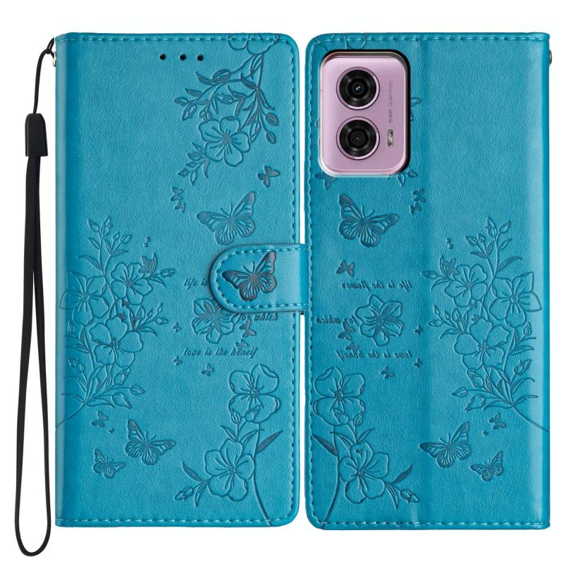For Motorola Moto G34 Butterflies and Flowers Leather Phone Case(Blue)