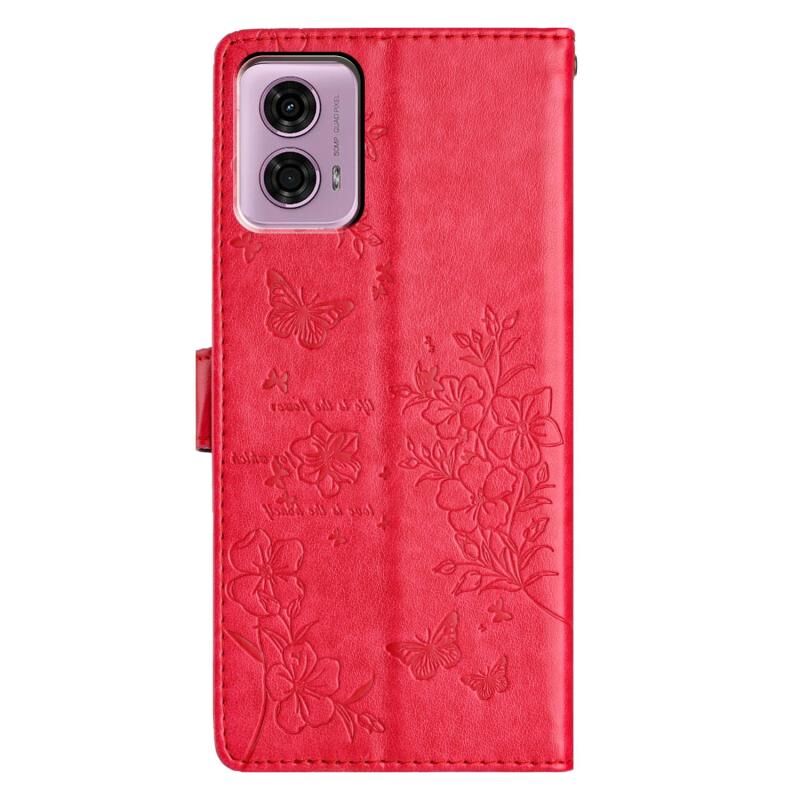 Θήκη τηλεφώνου δερμάτινη για Motorola Moto G34 με σχέδια πεταλούδες και λουλούδια (Χρυσό)
