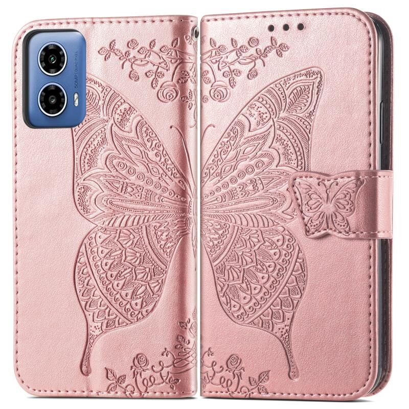 Θήκη τηλεφώνου δερμάτινη ανάγλυφη με σχέδιο πεταλούδας και λουλουδιών για Motorola Moto G34 (Μαύρο)