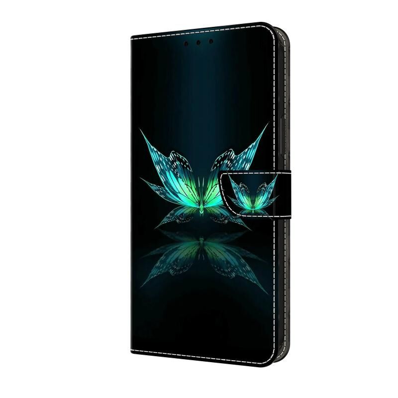 Θήκη κινητού τηλεφώνου από δέρμα, αντικραδασμική, προστατευτική για Motorola Moto G34 Crystal 3D (Αντανάκλαση Πεταλούδας)