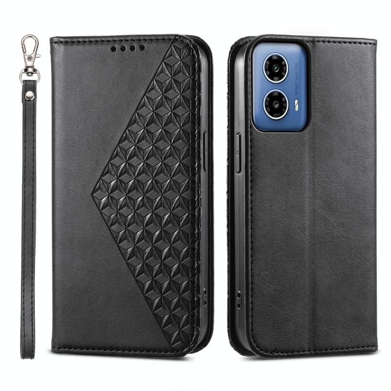 For Motorola Moto G34 Cubic Grid Calf Texture Magnetic Leather Phone Case(Black)