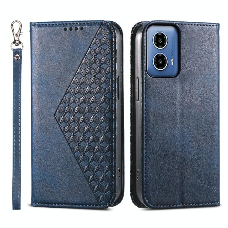 For Motorola Moto G34 Cubic Grid Calf Texture Magnetic Leather Phone Case(Blue)