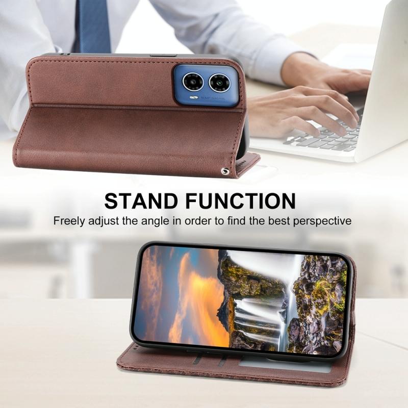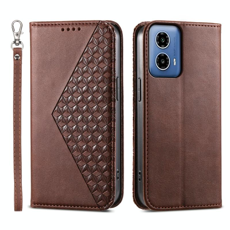 For Motorola Moto G34 Cubic Grid Calf Texture Magnetic Leather Phone Case(Brown)