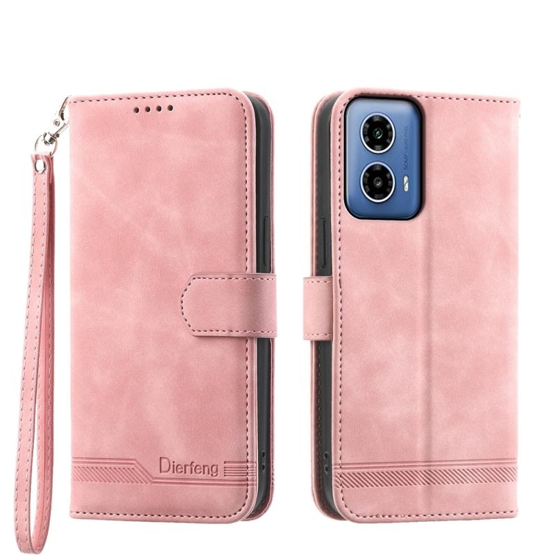 For Motorola Moto G34 Dierfeng Dream Line TPU Hybrid PU Leather Phone Case(Pink)