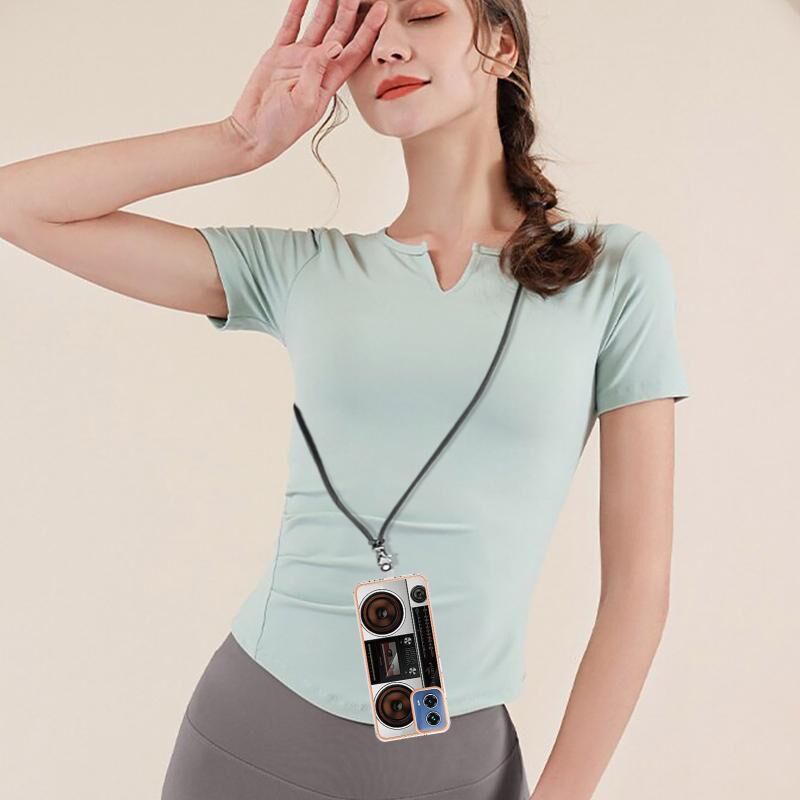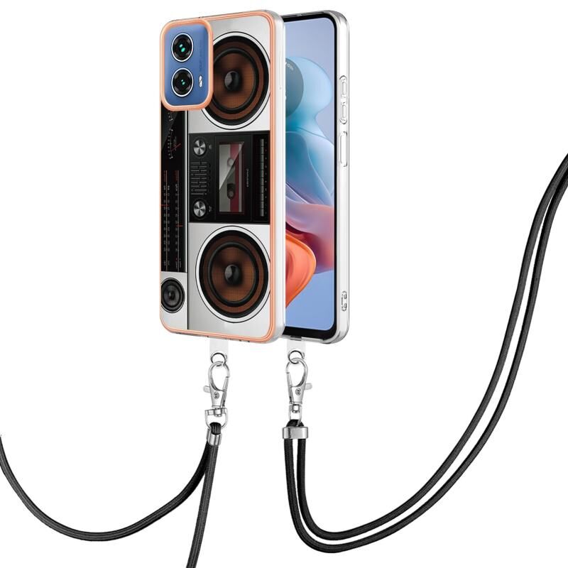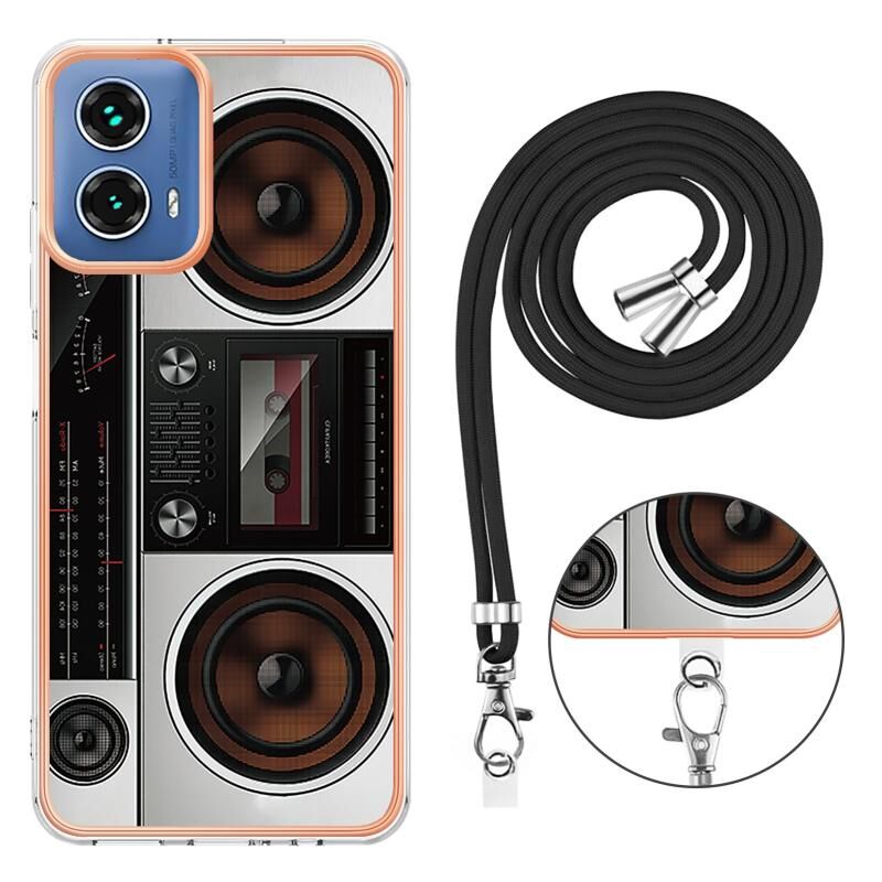 Θήκη τηλεφώνου για Motorola Moto G34 με επιμετάλλωση, διπλής όψης IMD με κορδόνι (Ρετρό Ραδιόφωνο)