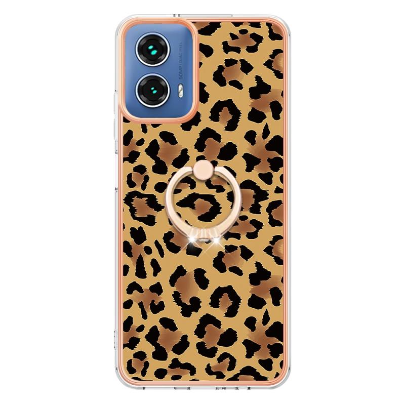 For Motorola Moto G34 Electroplating Dual-side IMD Phone Case with Ring Holder(Leopard Print)