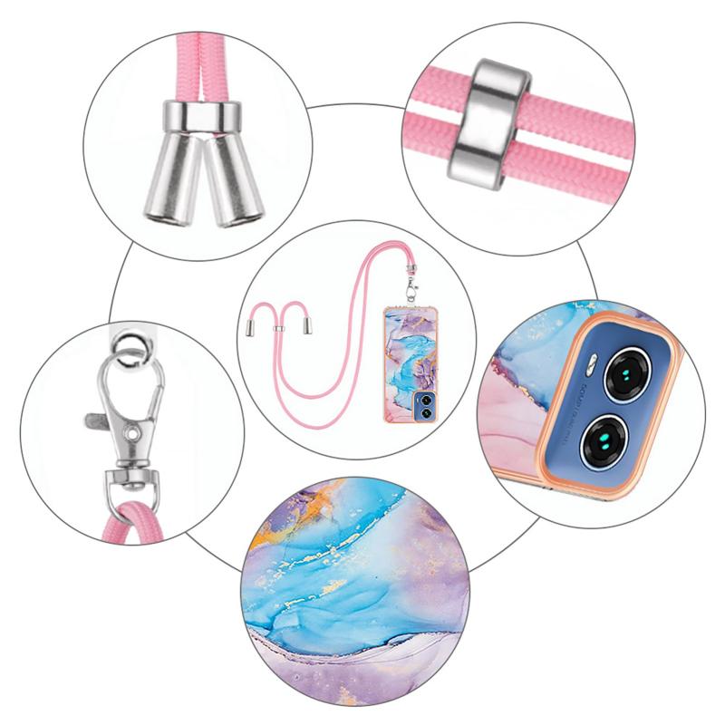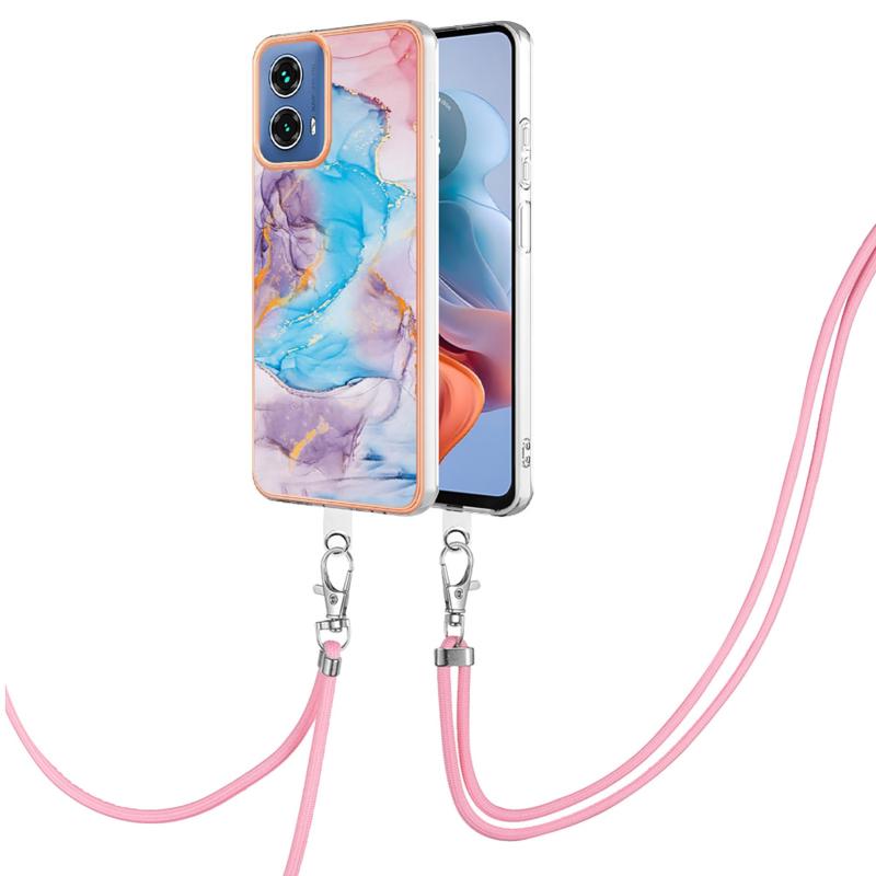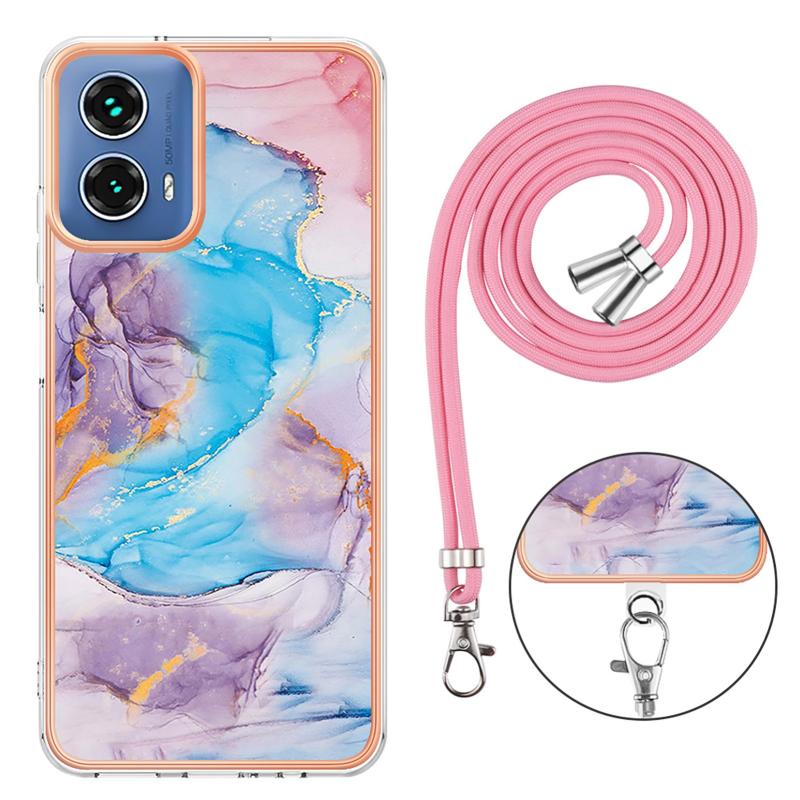 For Motorola Moto G34 Electroplating IMD TPU Phone Case with Lanyard(Blue Marble)