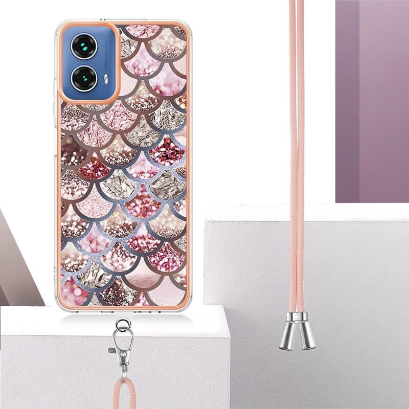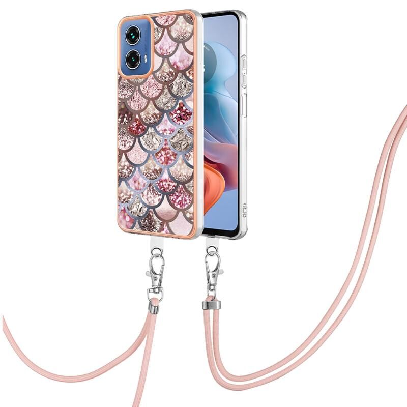Θήκη κινητού τηλεφώνου για Motorola Moto G34 με ηλεκτρολυτική επιμετάλλωση IMD TPU με κορδόνι (Ροζ Λέπια)