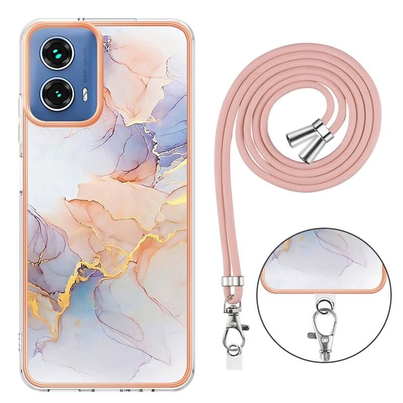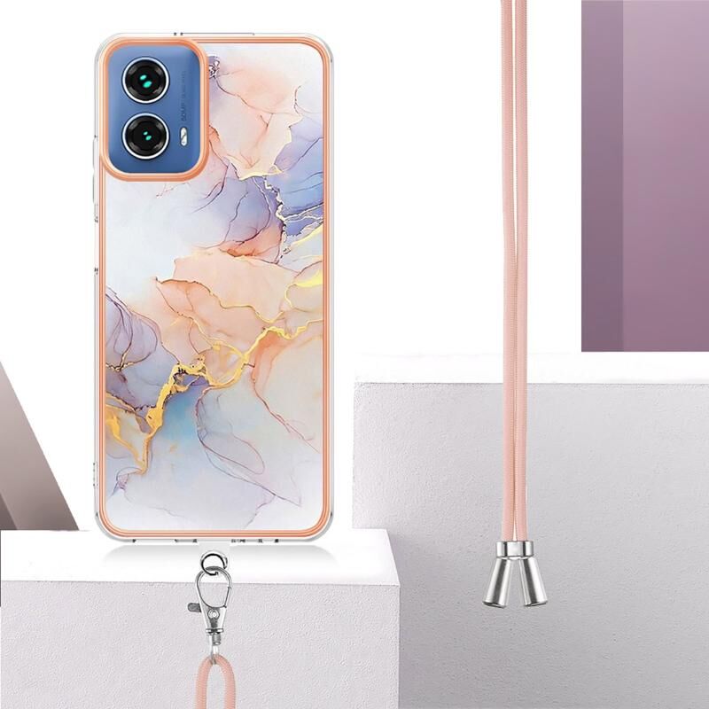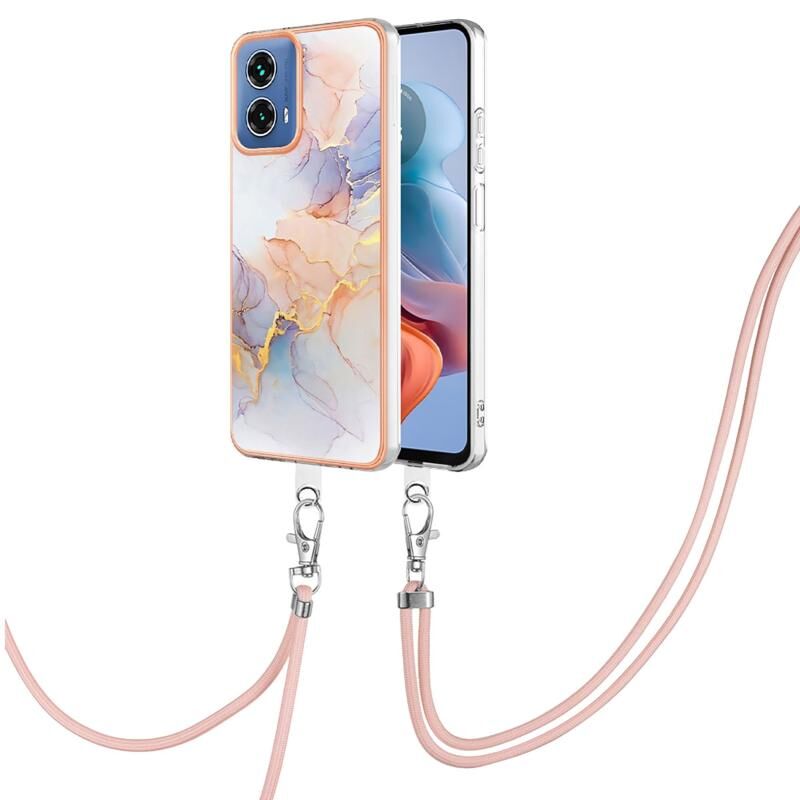 Θήκη κινητού τηλεφώνου για Motorola Moto G34 με ηλεκτρολυτική επιμετάλλωση IMD TPU με κορδόνι (Ροζ Λέπια)