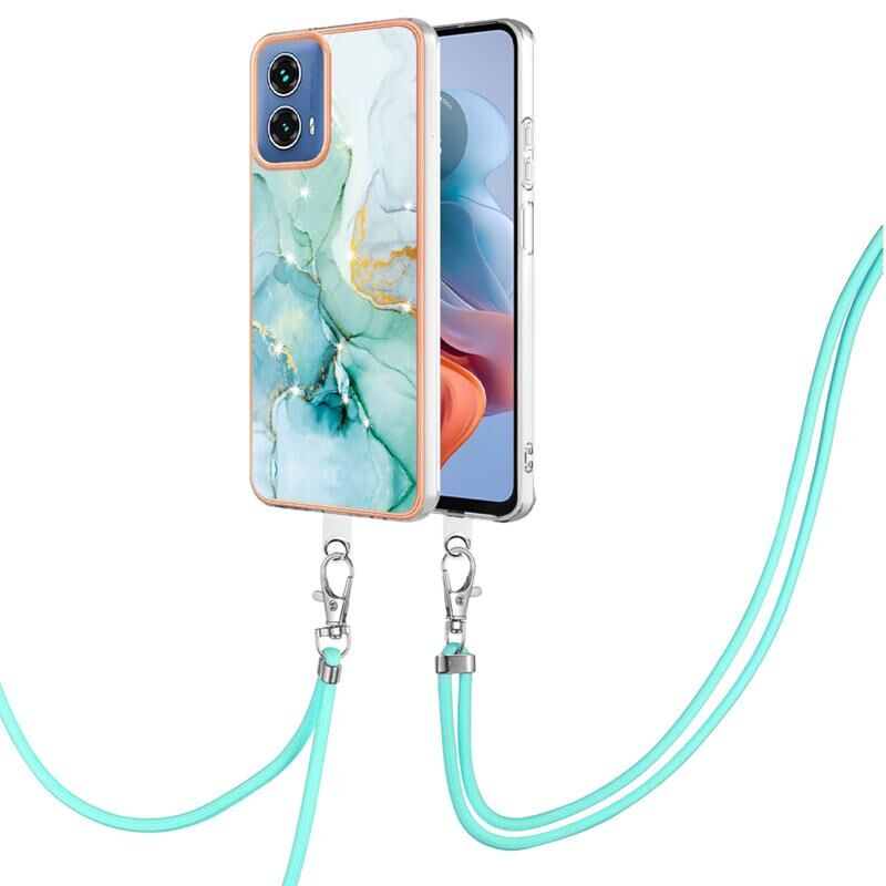 Θήκη κινητού τηλεφώνου για Motorola Moto G34 με επιμετάλλωση, σχέδιο μαρμάρου, διπλής όψης IMD με κορδόνι (Μωβ 001)
