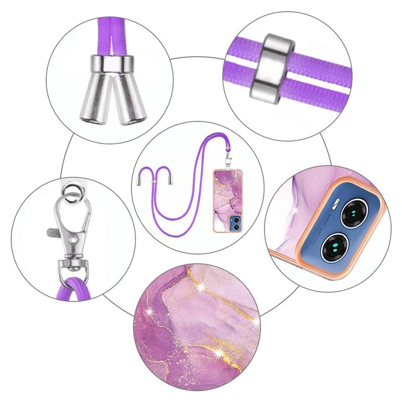 Θήκη κινητού τηλεφώνου για Motorola Moto G34 με επιμετάλλωση, σχέδιο μαρμάρου, διπλής όψης IMD με κορδόνι (Μωβ 001)