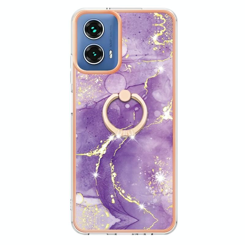 Θήκη κινητού τηλεφώνου για Motorola Moto G34 Επιμετάλλωση Μάρμαρο IMD TPU με Δακτύλιο Στήριξης (Λευκό 006)