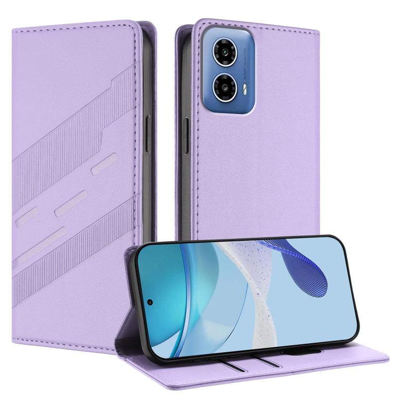 For Motorola Moto G34 Embossed Multi-functional Wallet Retro Leather Phone Case(Light Purple)