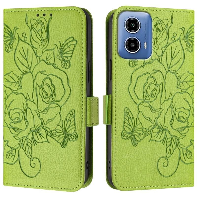 Για Motorola Moto G34 ανάγλυφο Rose RFID Anti-theft δερμάτινη θήκη τηλεφώνου (Πράσινο)