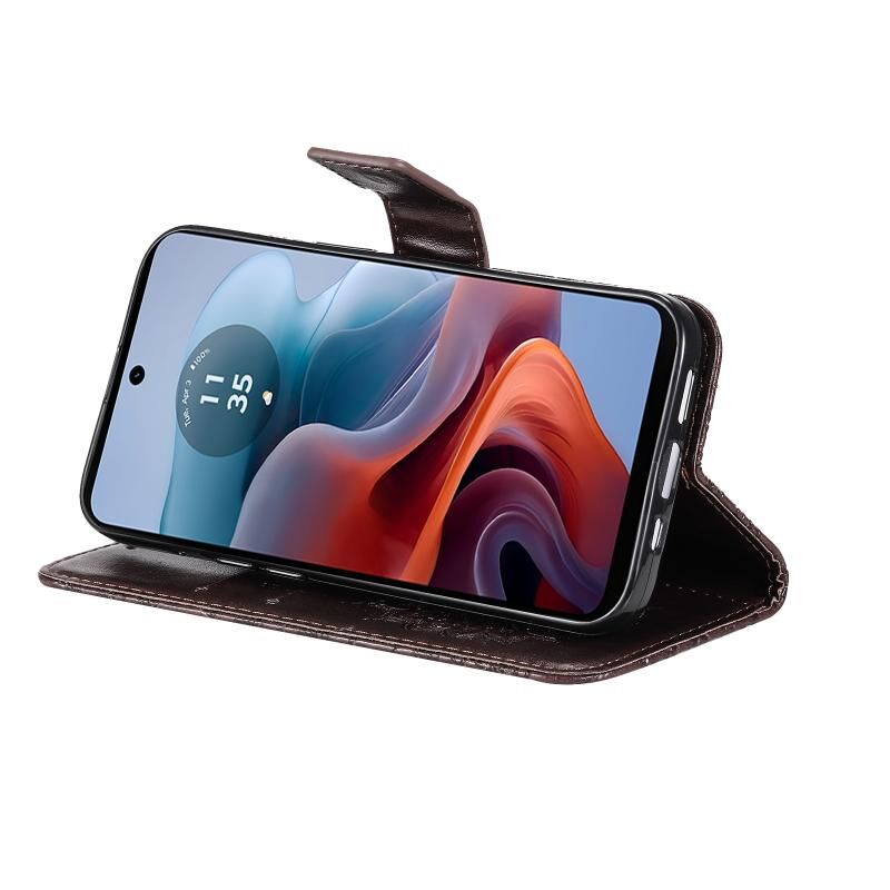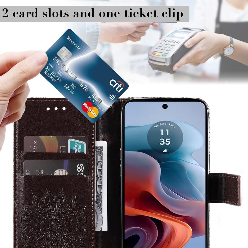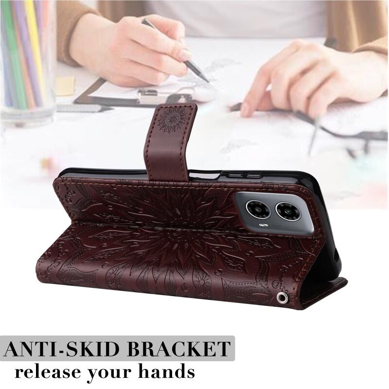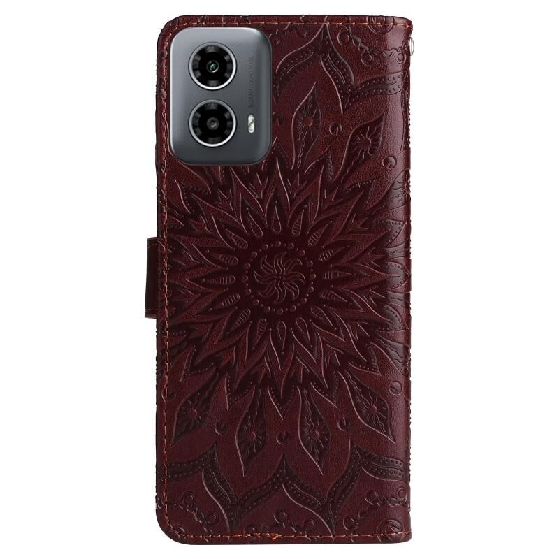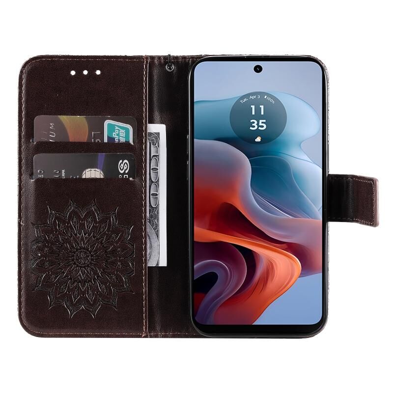 Θήκη τηλεφώνου από δέρμα με σχέδιο ανάγλυφου ηλίανθου για Motorola Moto G34 (Καφέ)