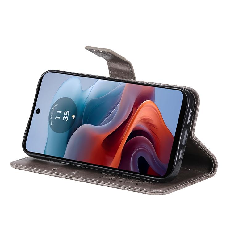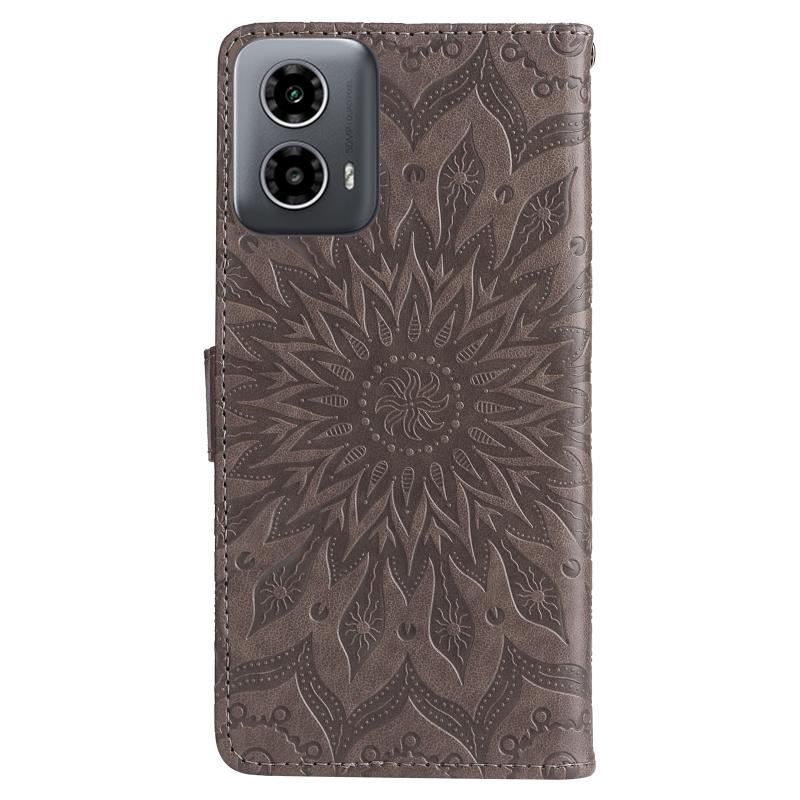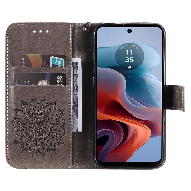 For Motorola Moto G34 Embossed Sunflower Pattern Flip Leather Phone Case(Grey)