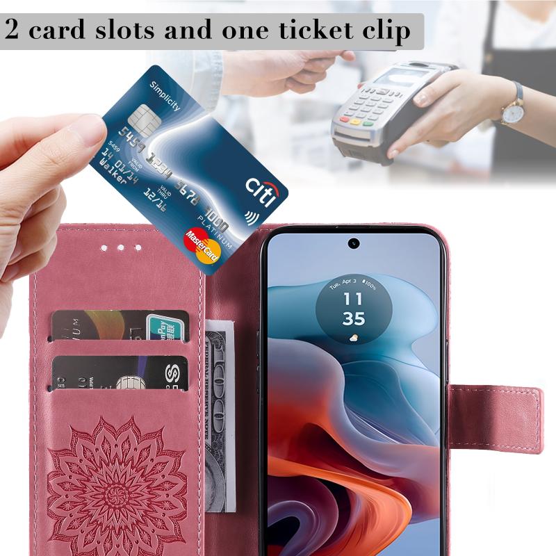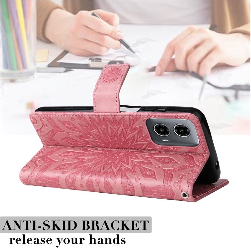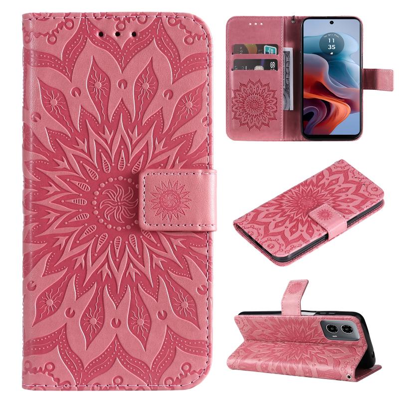 For Motorola Moto G34 Embossed Sunflower Pattern Flip Leather Phone Case(Pink)